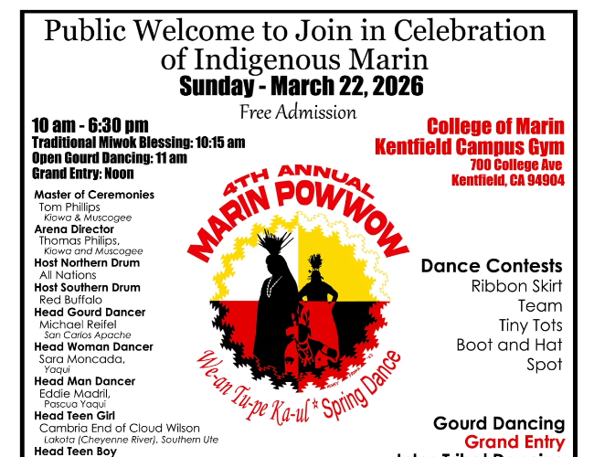 For more information: https://marinamericanindianalliance.org/ or call 415-342-2049