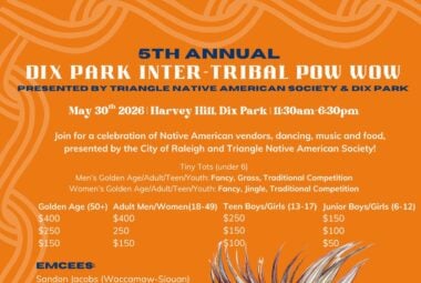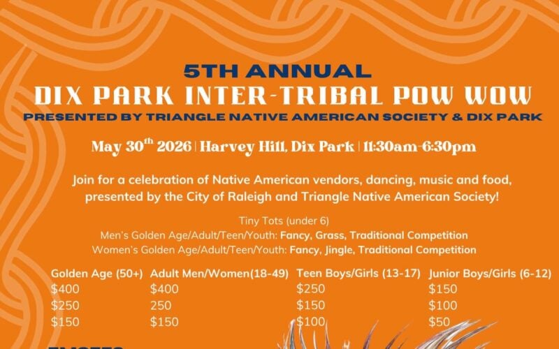Join for a celebration of Native American vendors, dancing, music and food, presented by the City of Raleigh and Triangle Native American Society!