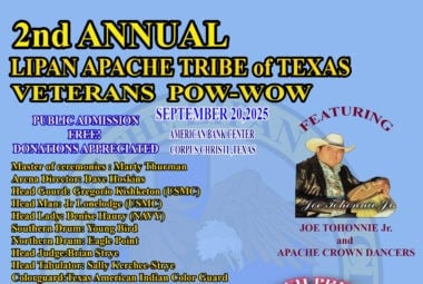 The Lipan Apache Tribe of Texas is proud to host its Veterans Pow Wow on the beautiful coast of Texas. This special event honors our Native veterans and brings awareness to critical issues such as suicide prevention and diabetes within our communities. Veterans Service Officers (VSOs) from the Department of Veterans Affairs will be present to offer support and resources. Join us for a weekend of healing, culture, and celebration—featuring traditional dancing right on the beach. All are welcome!