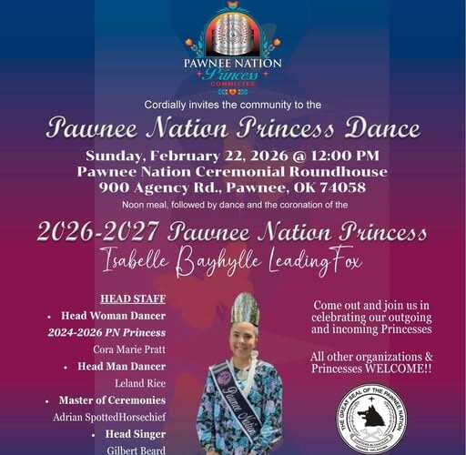 2026-2027 Pawnee Nation Princess Isabelle Bayhylle Leading Fox